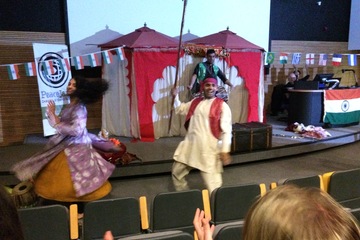Entertainment was not lacking. The American host, Brett, son of one of the original founders of PeaceJam in the US, was a great entertainer in his own right! Students also enjoyed ‘Surya’s Story’ performed by an all Asian cast, who though dance and interactive theatre brought issues of the Rights of the Child and Fairtrade to dramatic and colourful life. Through the story of a small child who sews footballs in northern India, the audience learnt how children are exploited by the West’s desire for cheap consumer products. It was exceptionally moving.